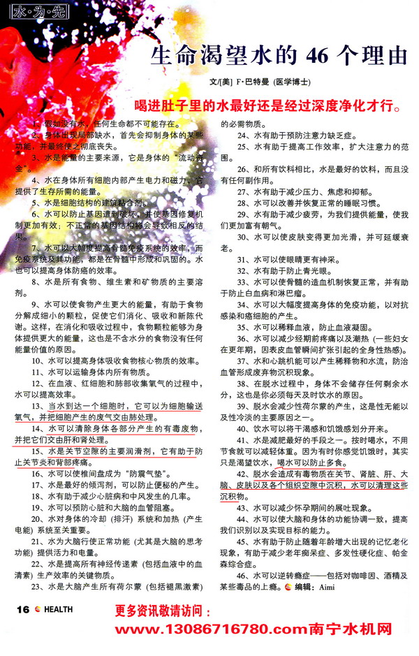 剪报图片:喝水不能补充微量元素 作用微乎其微