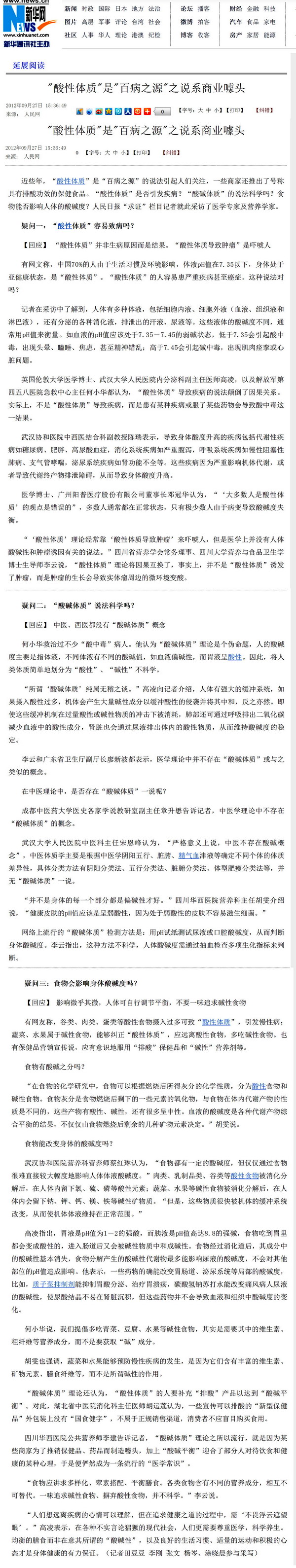 剪报图片:315晚会戳穿碱性水的谎言仅是一种营销手段