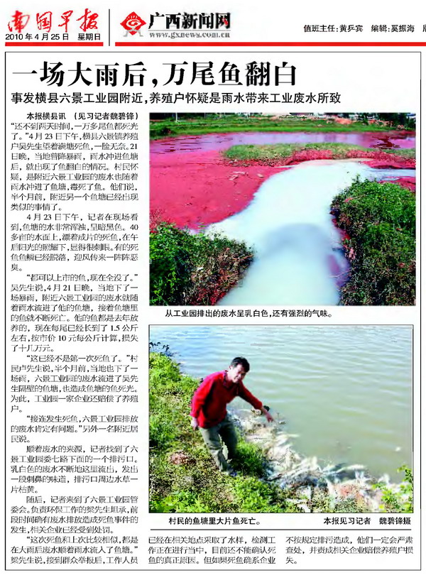 剪报图片:南国早报 一场大雨后,万尾鱼翻白