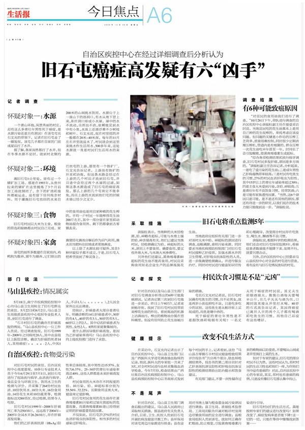 剪报图片:生活报 旧石屯癌症高发疑有六凶手