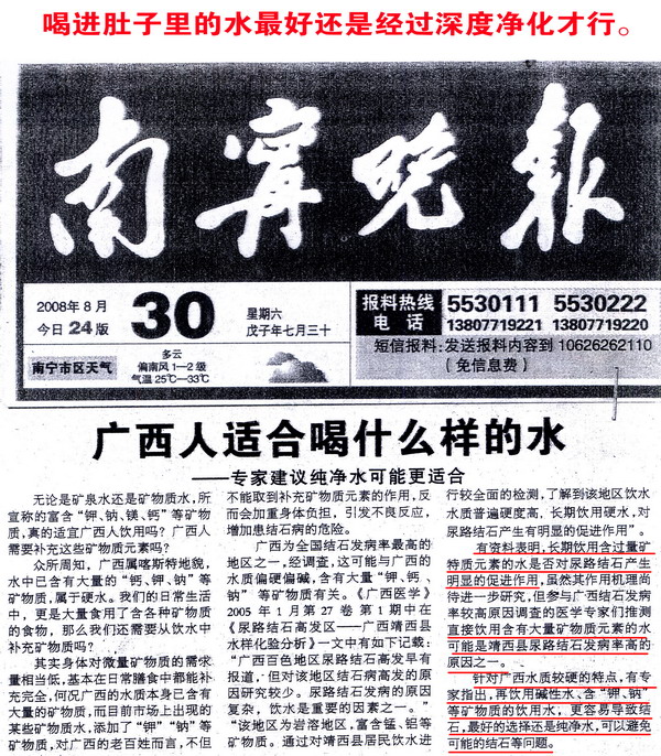 剪报:南宁日报 广西人适合喝什么样的水
