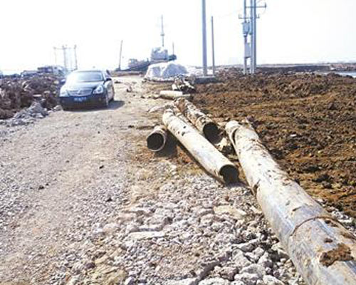 4月23日,当地海洋渔业执法部门在海边挖出多根暗管。暗管一直通到海边,化工企业的污水可以从暗管直接排入大海。陈华告知执法部门,附近还有暗管。果然在往南边的地下,又挖出了四根排污暗管。这些暗管通到泄洪渠。污水排出后经明渠通过闸口进入大海。